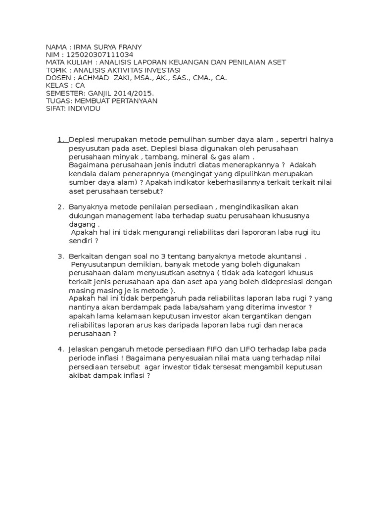 Pertanyaan Tentang Analisis Laporan Keuangan : Memahami Logika Laporan Keuangan - Pertanyaan tentang analisis laporan keuangan.. Check spelling or type a new query. We did not find results for: Maybe you would like to learn more about one of these? Pertanyaan tentang analisis laporan keuangan.